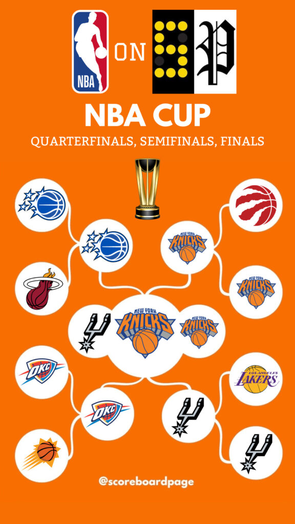 Your evening NBA Scoreboard Page: Knicks win the NBA Cup Final 124-113 over the Spurs. And the “Double Dribble” championship celebration continues: