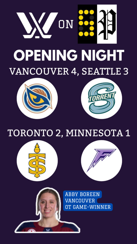 Your morning PWHL Scoreboard Page: Vancouver 4, Seattle 3 Toronto 2, Minnesota 1