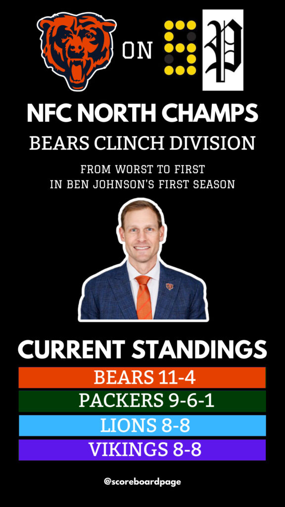 NFC NORTH CHAMPS: The Chicago Bears have clinched the division in Ben Johnson’s first year as head coach