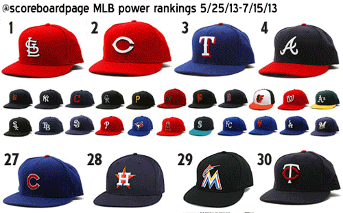 And now, our MLB power rankings from Memorial Day to the All-Star Break in one photo. It’s like our version of the “hidden ball under the cap” shell game. Watch your favorite team bounce around the screen.