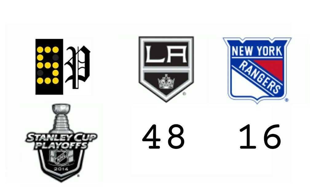 We found 54 expert picks last year and they were split down the middle between the Blackhawks and Bruins. This year we found 64 and the Kings are the overwhelming favorites. So of course we’re going against the grain. At least we have a couple of Blue Jays to back us up. That’s right, we found a few extra “experts.” Overall, 48 picked L.A. That left only 16 in favor of the Rangers. We’ll see what happens starting tonight.